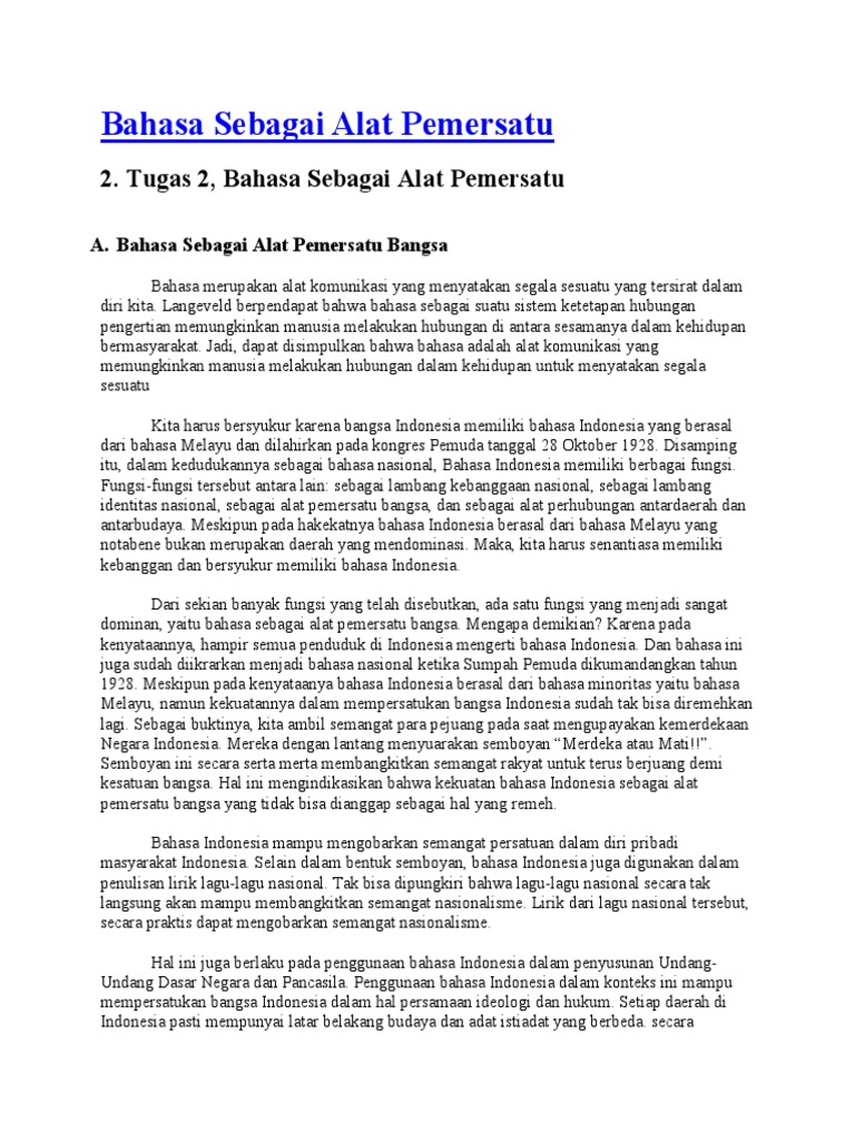 Nov 27, 2018 · sebagai bahasa pemersatu bangsa, tentunya bahasa indonesia menjadi bahasa yang digunakan dalam aktivitas harian dari masyarakat indonesia yang juga menyatukan perbedaan dalam satu bahasa yang sama dan dimengerti oleh semua penduduknya pemersatu bangsa. Nov 27, 2018 · sebagai bahasa pemersatu bangsa, tentunya bahasa indonesia menjadi bahasa yang digunakan dalam aktivitas harian dari masyarakat indonesia yang juga menyatukan perbedaan dalam satu bahasa yang sama dan dimengerti oleh semua penduduknya.